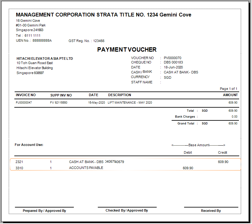 Make payment upon the due date with a Print payment voucher (PV).