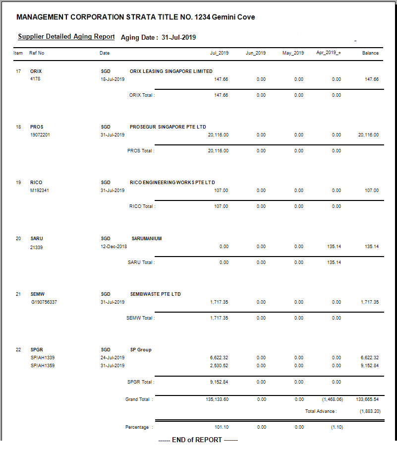 Vendor Aging Report
