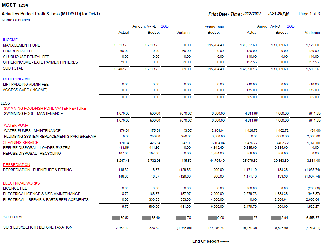 Compare with actual versus budgeted monthly value with Print MTD and YTD variance report.